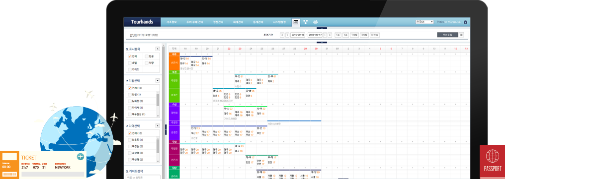 Tourhands는 인바운드 여행사를 위해 투어관리, 수배관리, 가이드관리, 거래처관리, 정산 & 회계관리 및 통계 등을 고객사와 함께 구축하는 최적의 맞춤형 프로그램입니다.